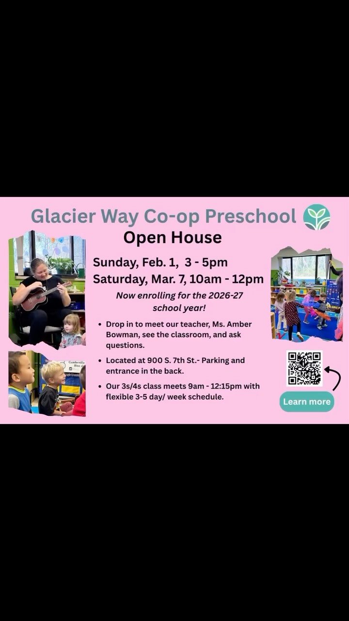 Come grow your child’s love of learning at Glacier Way Co-op Preschool