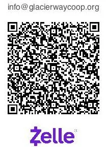 Pay with Zelle: Info@glacierwaycoop.org (Zelle QR code below)